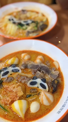 今日行った麻辣湯🎶 栄でもなんか普段行かない通りにあった!! パンダのかまぼこがかわいくて😭💞 平日なのにいっぱい人いたー!! お会計の後初めて来た?って言われて 半額クーポンもくれた😻✨ リピート確定🎶