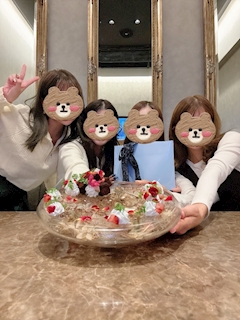 今週ラスト出勤です🥰 友達の誕生日会しました🎂🎈 喜んでくれて嬉しいな🥰 貸切のカラオケルームのある部屋でおしゃれだったー🤩 牡蠣のプレートも🦪 牡蠣とカラスミパスタもウニクリームパスタも🍝 全部美味しかった〜😆