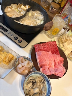 お家でお鍋たべながら飲み会🍲🏠 和牛のお肉美味しかったー❣️