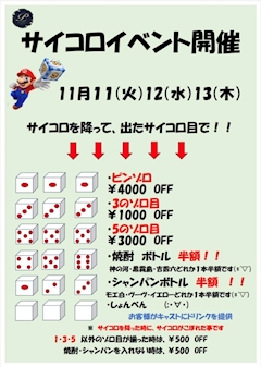 サイコロ〜🎲🎶 今日明日明後日はサイコロイベントです! お得です🉐❕ お待ちしてます🌟
