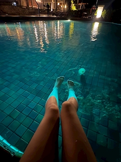 お母さんと旅行に行ったんだけど、 お母さんは夜疲れちゃって部屋で休むってなったので 1人ナイトプールもしてきちゃって🤭