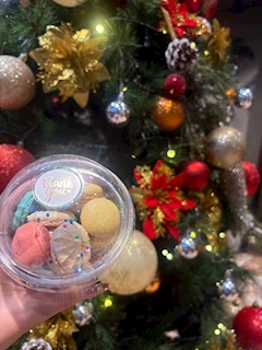 フィリピンは9月くらいからクリスマスモード🎄🤶おばあちゃんの家出てすぐ横に大きい映えそうなカフェできてた! そこにご飯の後に(笑)ピザ買いに行って可愛いマカロンも買いました🍪🍭店内に大きいクリスマスツリーあったから一緒に📸カフェ出ようとしたら大雨降っててびっくり🥶そこから台風の始まり。。。🌀笑