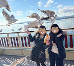 週末は友達と浜名湖にお出かけ行ってました🐟 カモメの距離感すごかった😂 かっぱえびせん持ってると容赦なく 頭に停まってくるから面白かった😆🕊️ 夜ご飯はホテルのビュッフェで 鰻とか静岡おでんとかいっぱい食べましたー🍢 カラオケルームもあるし最高😀🎤