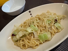 こないだ食べたフレンチのパスタ🍝 塩焼きそばに見える気もするけど ペペロンチーノです🍝🧄🌶️ 美味しかった❣️ やっぱペペロンチーノはニンニクと唐辛子がないとね❣️