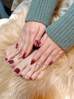 おはようございます🌞 新しいネイルは ゴールドとワインレッド〜💖💅 華金です❣️ たくさん飲みたいっ🍻