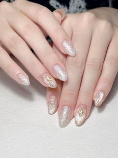 new nail💅✨ 結構短くなったし、めっちゃ清楚✨ キラキラで可愛い😻