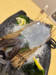 おはようございます☀ 今週もフル出勤です❣️ お待ちしております〜😆 イカの活け造り🦑 フグしゃぶしゃぶのコース🐡 美味しかった〜😋
