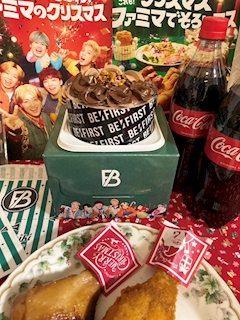イブだからチキンとケーキ食べた〜🎶 ママさん用意してくれてたらしい ビーファのファンだからなんか張り切ってた笑 まだ冷蔵庫にあるから帰ったら食べるの楽しみ🍰💞