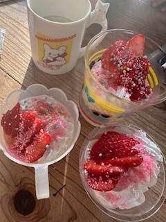 朝からデコレーション?してくれた🥰てかまず話変わるんだけどこのコップの方はなまるおばけ。って言うんだけど知らない人しか居ないww知ってる人あんま見た事ないwwwサンリオだよ😙🎶3人で美味しく頂いたんだけど、、このレインボーのツブツブクシャミしてぶちこぼしてて笑ったわぁ~笑笑漫画かと思ったわ🤭🤣