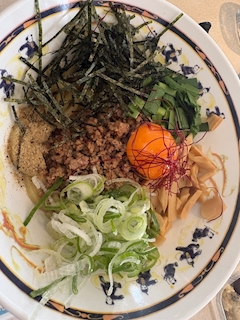 出勤です❣️ 台湾まぜそば🇹🇼🍜 ガッツリおいし!! 最近太りすぎたやばい😅 夜中の食べ癖控えないと💦