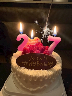 出勤です❣️ プランでケーキいただきました🎂 歳、28だけど27のロウソク🤭 一年若返って嬉しい🤭